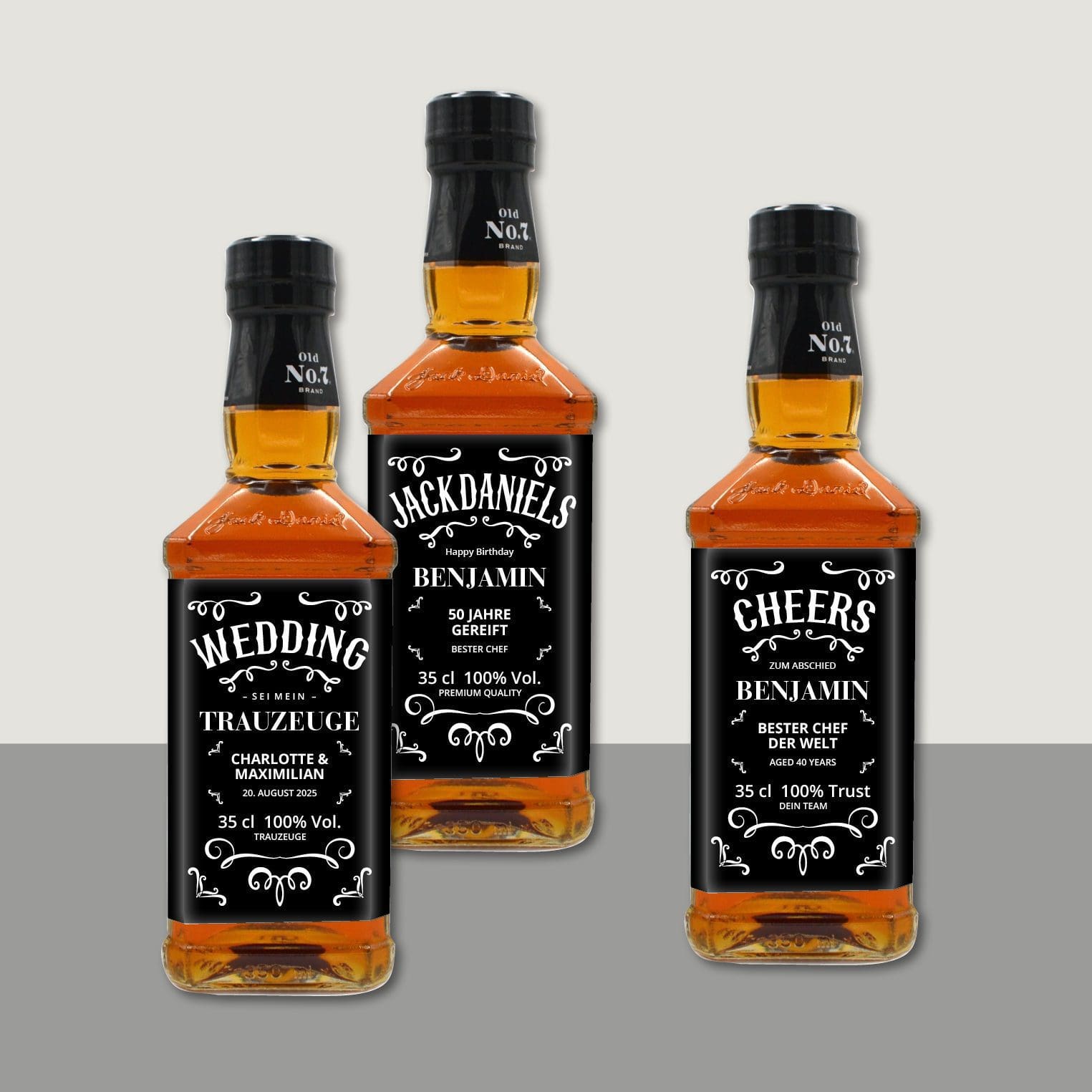 Die gedruckten Flaschenetiketten sind für 0,35 Liter Jack Daniel's Whisky-Flasche* und für 1,0 Liter Jack Daniel's Whisky-Flasche ausgelegt, können aber auch problemlos zum Beispiel für Bierflaschen verwendet werden.