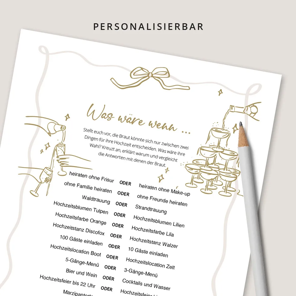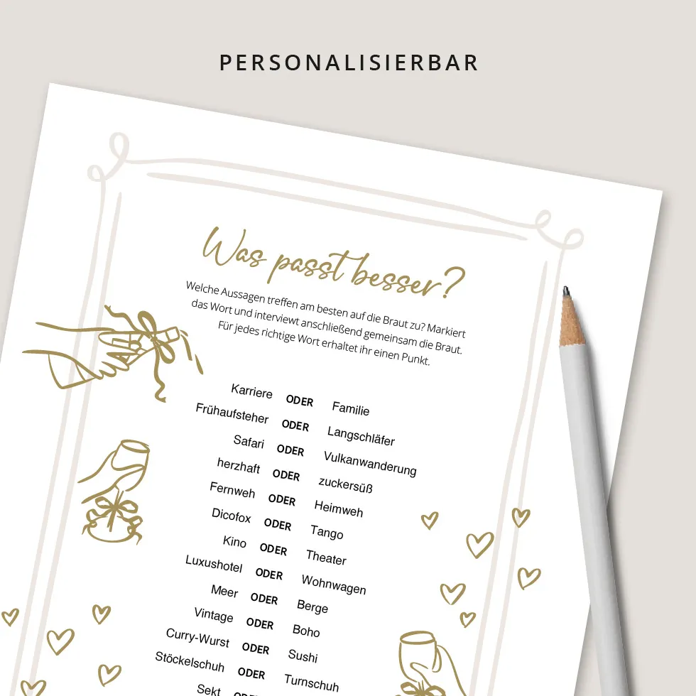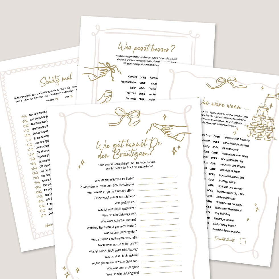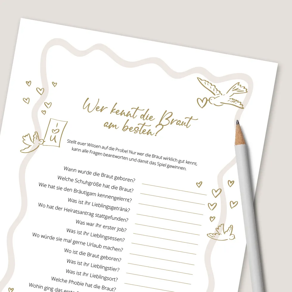 Das perfekte Spiel für Team Bräutigam: schnell ausgedruckt, sofort spielbar und garantiert mit „Ach was?!“-Momenten.