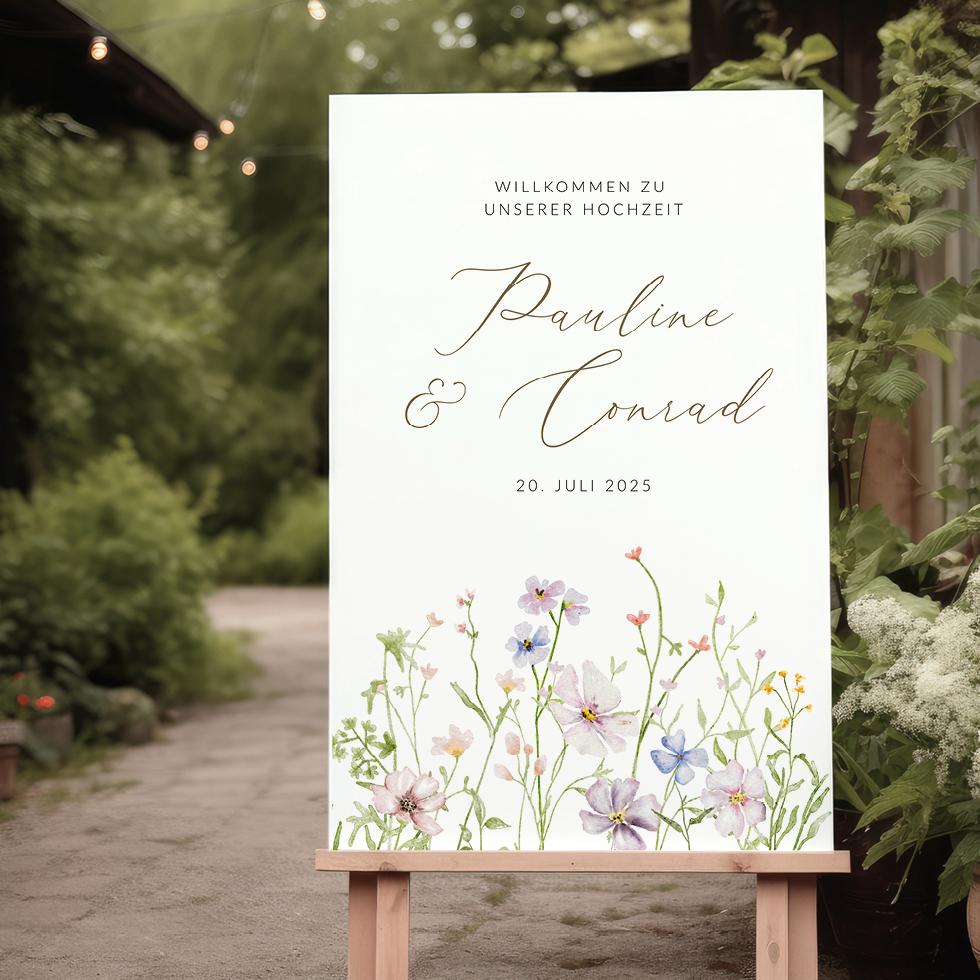 Gestaltet euer individuelles Willkommensschild zur Hochzeit ganz nach euren Wünschen und erhaltet es als PDF Vorlage, Poster, stabile Platte, Leinwand, auf Acryl, oder als gerahmtes Bild.