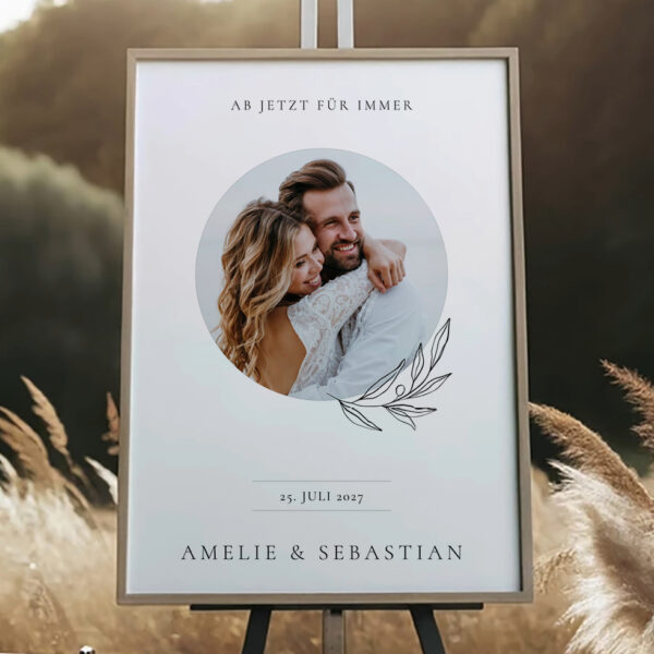 Gestaltet euer individuelles Willkommensschild zur Hochzeit ganz nach euren Wünschen und erhaltet es als PDF Vorlage, Poster, stabile Platte, Leinwand, auf Acryl, oder als gerahmtes Bild.
