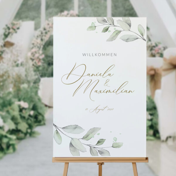 Gestaltet euer individuelles Willkommensschild zur Hochzeit ganz nach euren Wünschen und erhaltet es als PDF Vorlage, Poster, stabile Platte, Leinwand, auf Acryl, oder als gerahmtes Bild.