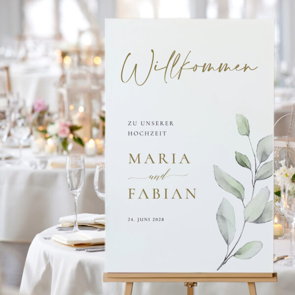 Gestaltet euer individuelles Willkommensschild zur Hochzeit ganz nach euren Wünschen und erhaltet es als PDF Vorlage, Poster, stabile Platte, Leinwand, auf Acryl, oder als gerahmtes Bild.