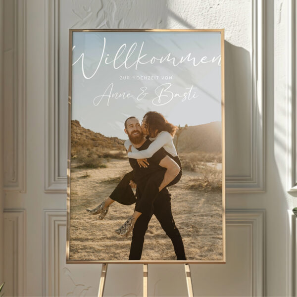 Gestaltet euer individuelles Willkommensschild zur Hochzeit ganz nach euren Wünschen und erhaltet es als PDF Vorlage, Poster, stabile Platte, Leinwand, auf Acryl, oder als gerahmtes Bild.