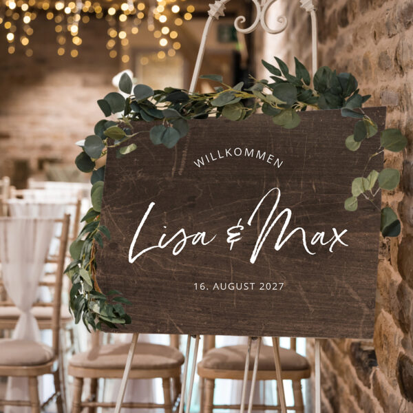 Gestaltet euer individuelles Willkommensschild zur Hochzeit ganz nach euren Wünschen und erhaltet es als PDF Vorlage, Poster, stabile Platte, Leinwand, auf Acryl, oder als gerahmtes Bild.