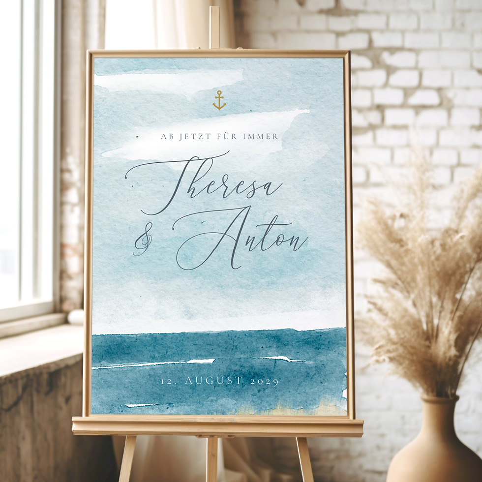 Gestaltet euer individuelles Willkommensschild zur Hochzeit ganz nach euren Wünschen und erhaltet es als PDF Vorlage, Poster, stabile Platte, Leinwand, auf Acryl, oder als gerahmtes Bild.