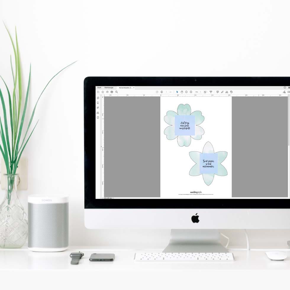 - Ladet euch die Vorlage für die Wunschblüten herunter.
