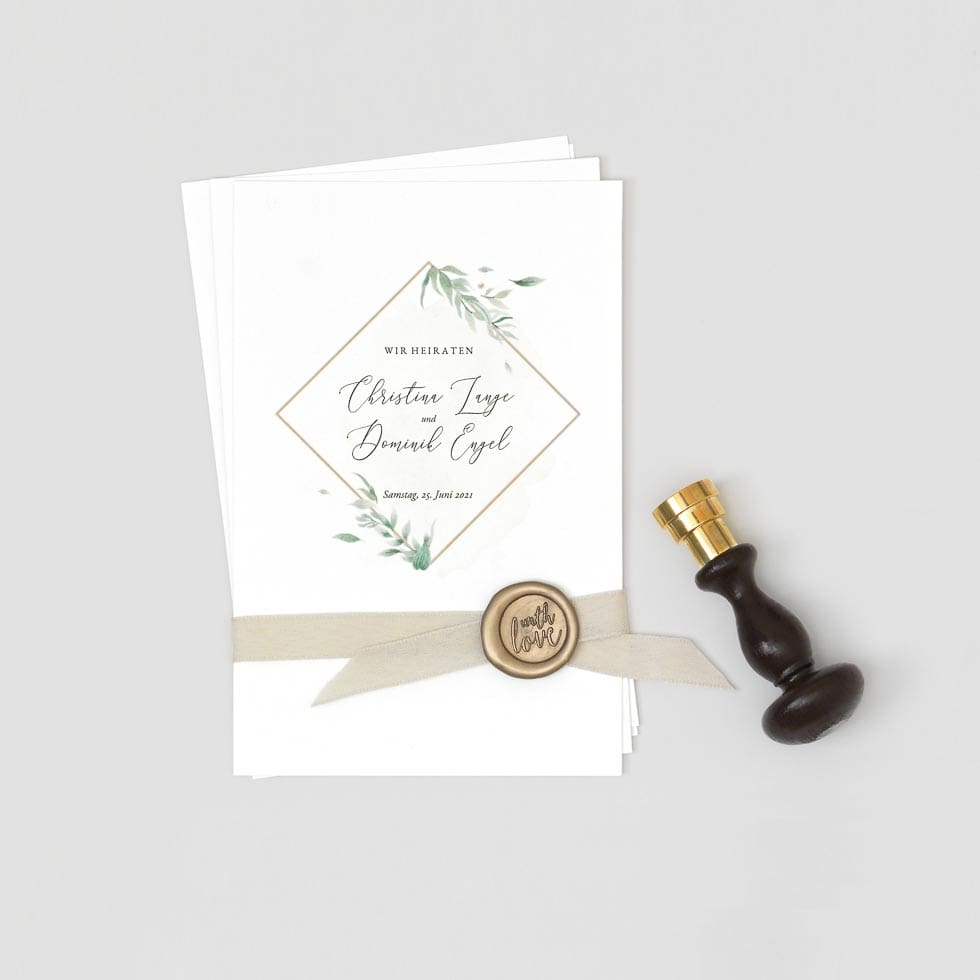 Gehört ihr zu den ungeduldigen Perfektionisten, könnt ihr euch selbstklebende Hochzeitssiegel mit Siegelwachs (nicht mit Siegellack!) erstellen.