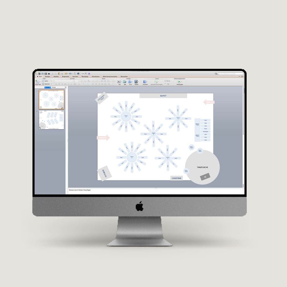 Richtig genial: Mit unserer Sitzordnung Vorlage für Word oder Powerpoint könnt ihr im Vorfeld den Ablauf eures Festes durchzuspielen, um alle Wege zu optimieren. Bei der Hochzeit ist es zum Beispiel hilfreich, sich genau zu überlegen, in welchem Bereich die Tanzfläche, der Geschenketisch, die Candybar oder das Buffet am besten platziert werden kann, damit sich zum Beispiel problemlos eine Schlange am Buffet bilden kann.