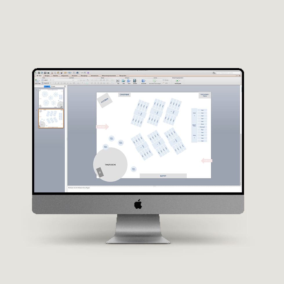 Zusätzlich könnt ihr eine schöne Überschrift gestalten, Logos ergänzen oder den Sitzplan mit verschiedenen Elementen richtig hübsch machen.