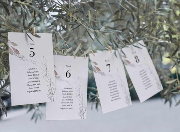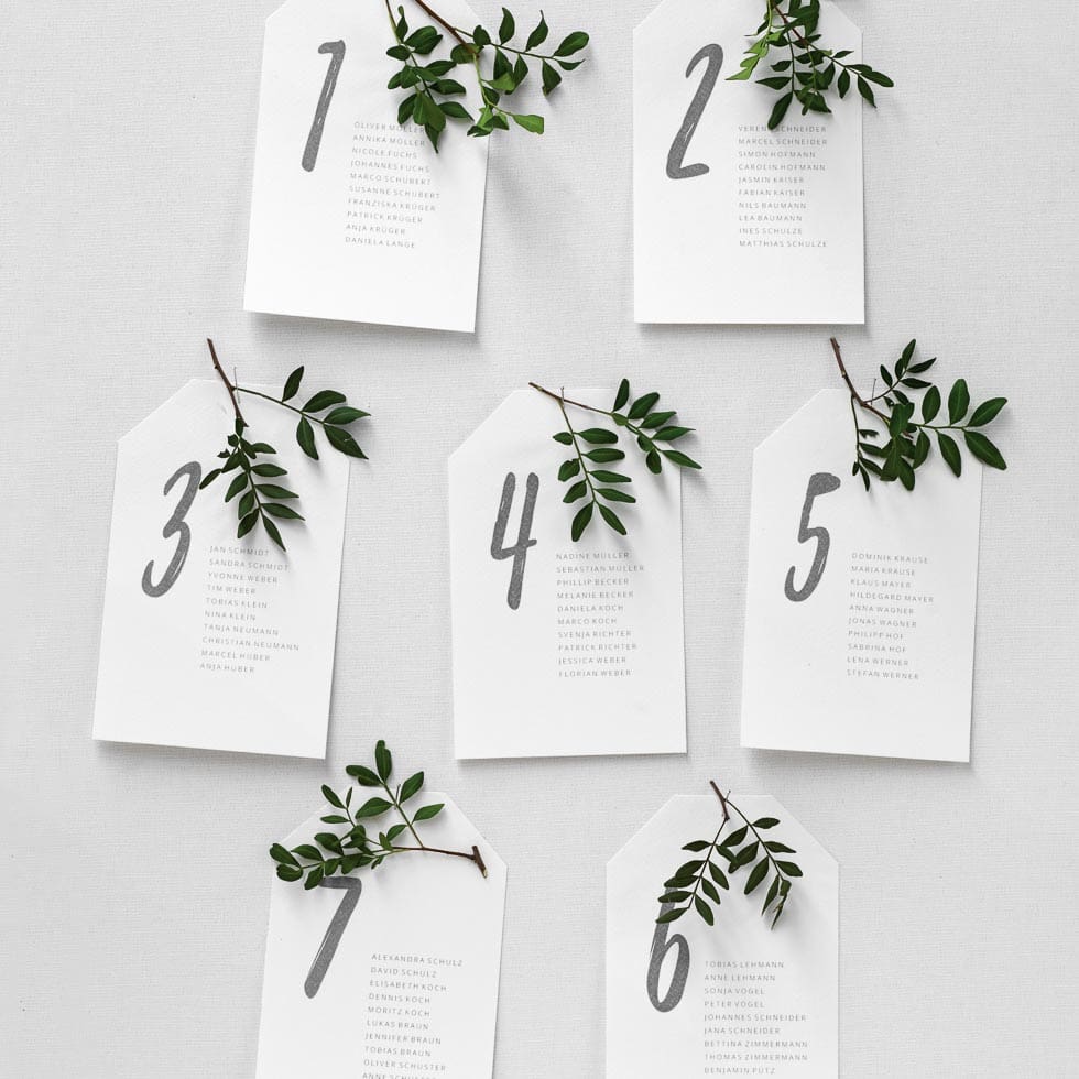 Mit unseren Vorlagen erstellt ihr schnell und einfach individuelle Platzkarten für jeden Gast:
