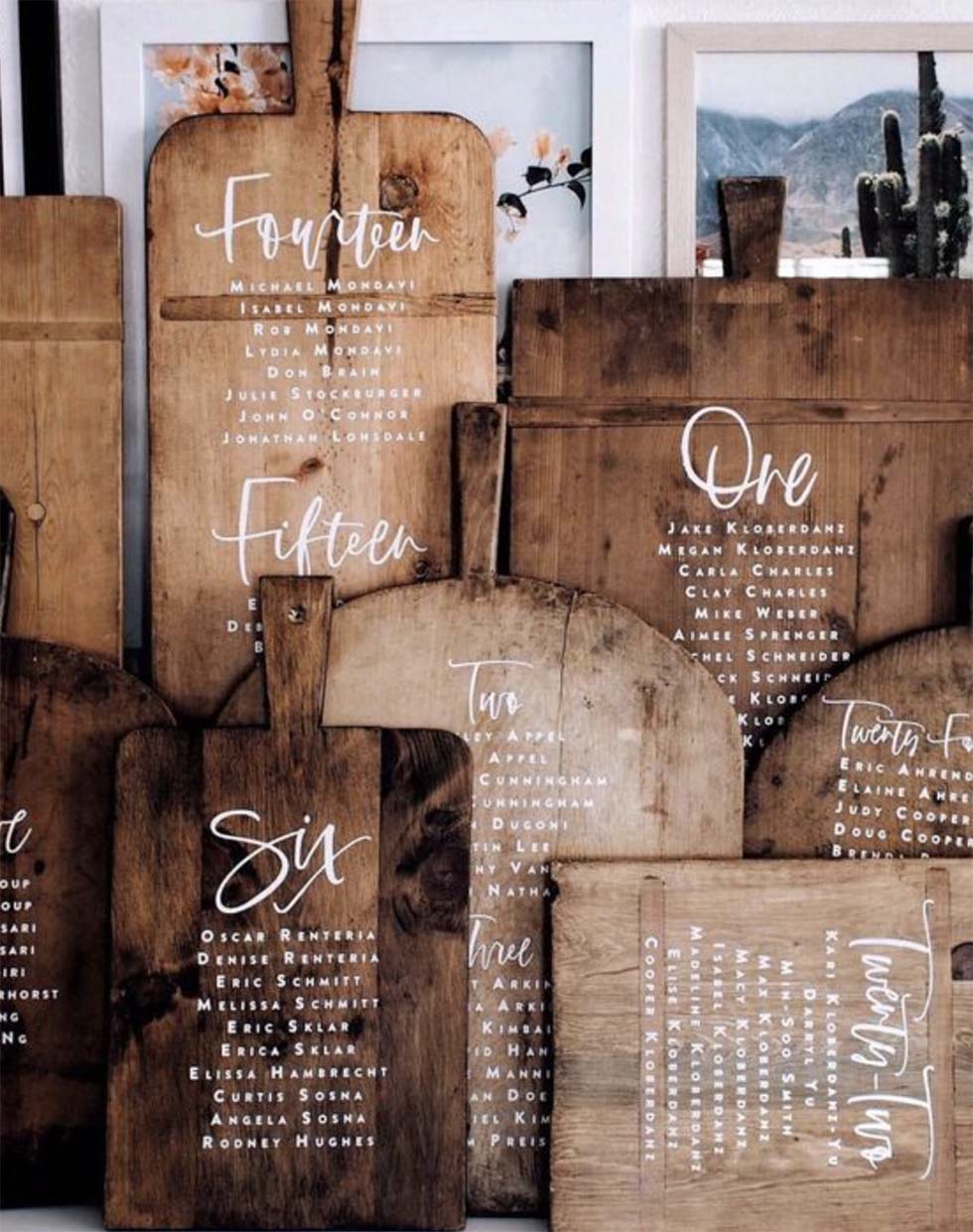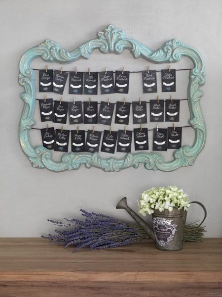 Befestigt eure Gruppentischkarten für die Hochzeit ganz einfach an Dekoelementen, Platten, Spiegeln, Bäumen oder einer Schnur und schon ist euer DIY Sitzplan fertig.