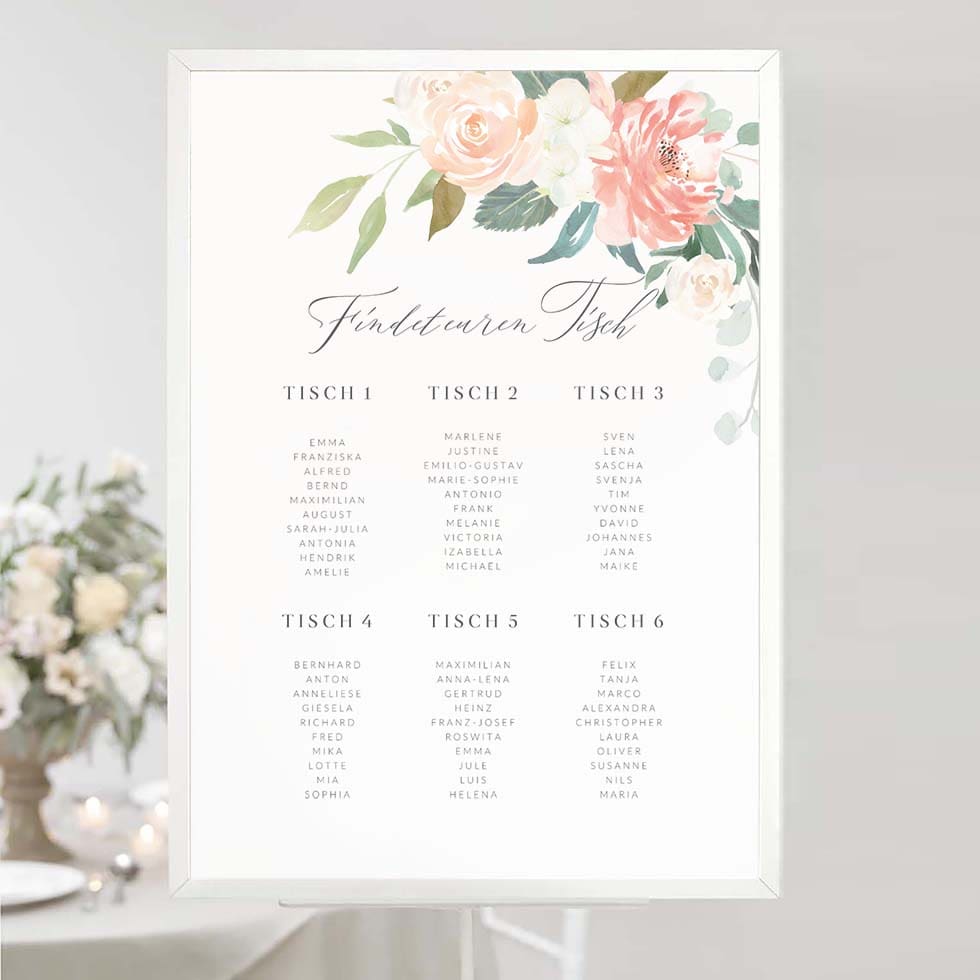 Der Sitzplan ist die erste Anlaufstelle für eure Gäste, wenn sie den Festsaal betreten.