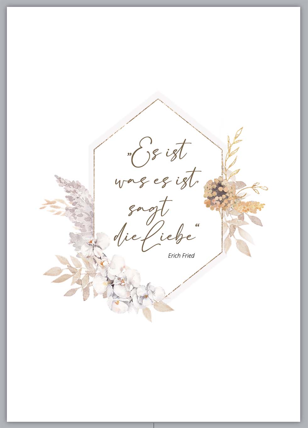 Diese Sprüche könnt ihr hübsch gestaltet als Text auf einer Seite in der Hochzeitszeitung integrieren und damit ein wunderbares Statement ergänzen.
