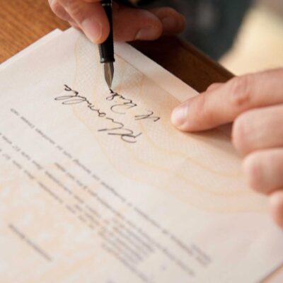 - Schriftliche Bestätigung der Trauung von dem Brautpaar, Trauzeugen sowie dem Standesbeamten auf der Eheurkunde. Nun unterschreibt ihr zum ersten Mal mit eurem neuen Familiennamen.