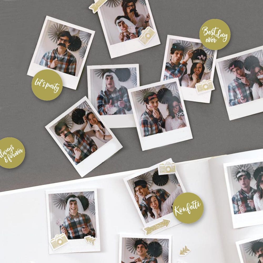 Mit Hochzeits-Statement-Stickern können eure Gäste ihre Fotos im Gästebuch befestigen und gleichzeitig die besten Kommentare zu eurer Hochzeit abgeben.