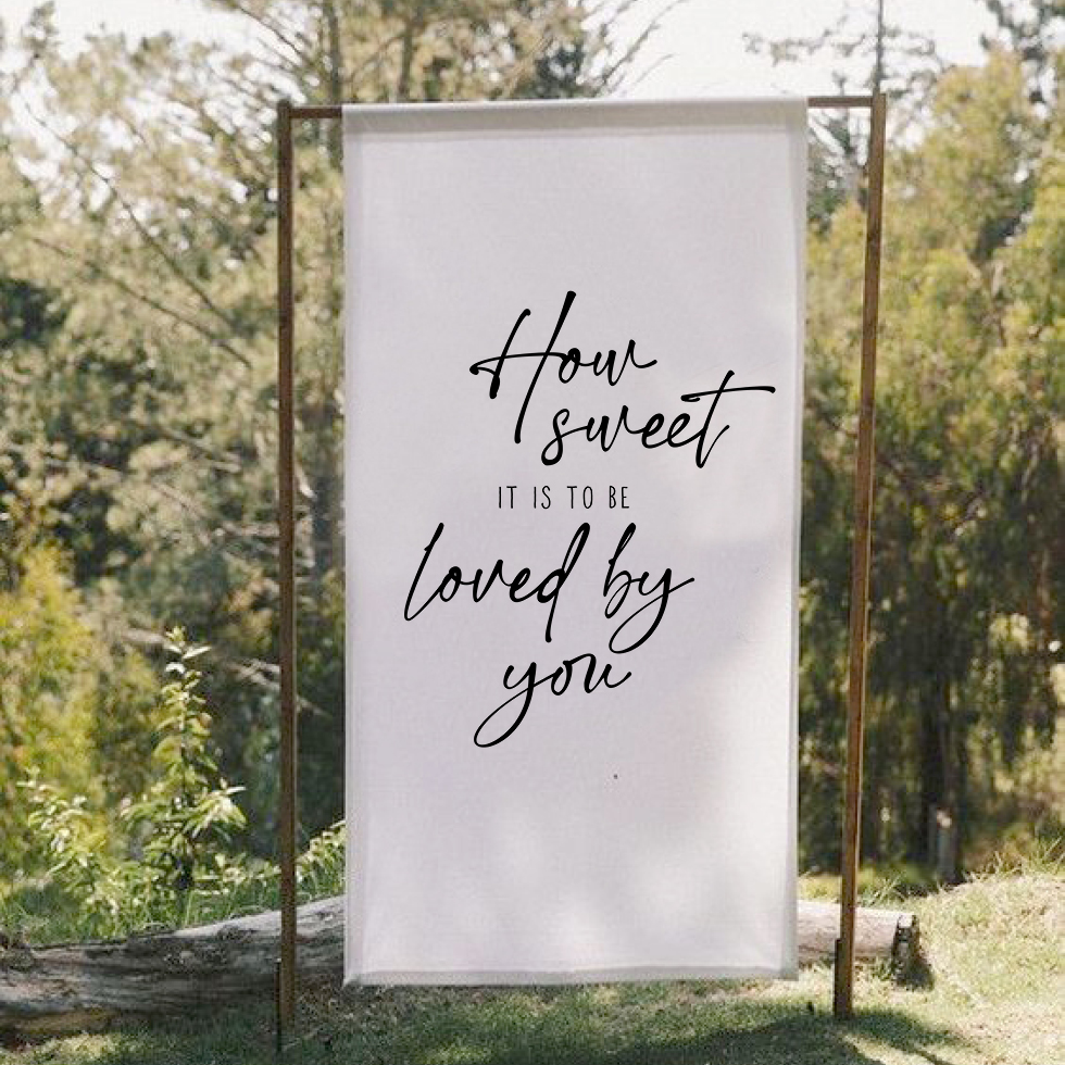 Ob einen schönen Spruch, eine Zeile eures Lieblingsliedes oder ein ganz besonderes Zitat: Mit einem Stoffbanner könnt ihr all dies als Deko zur Aussage bringen. Für die Hochzeit kann man zum Beispiel auf diese Weise auch einzigartige Trauhintergründe oder tolle Dekoelemente zaubern.