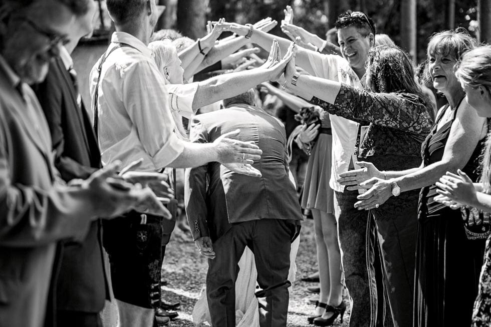 Das Besondere: Alle Gäste bilden ein Spalier aus ihren Händen und das Brautpaar tanzt als erstes durch. Dabei sind sich alle herrlich nah und es entsteht eine besondere Stimmung.