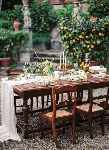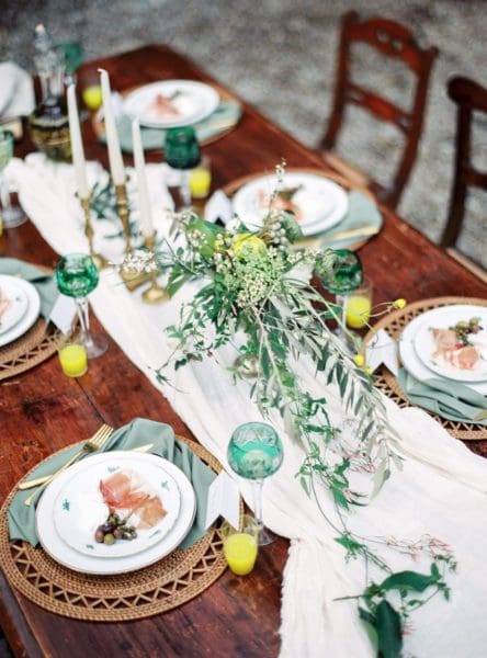Zitronen, Olivenzweige, weißes Leinen oder Terrakotta-Geschirr – eine wundervolle Basis für Feste am See, im Garten oder im Gewächshaus, die sofort Toskana-Feeling verbreitet.