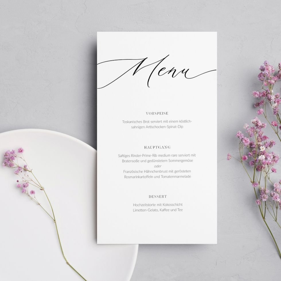 Diese Menükarten passen hervorragend und zur oben gezeigten Deko. Optional könnt ihr sie auf gelbes Papier drucken oder die Schriftfarbe individuell einfärben: