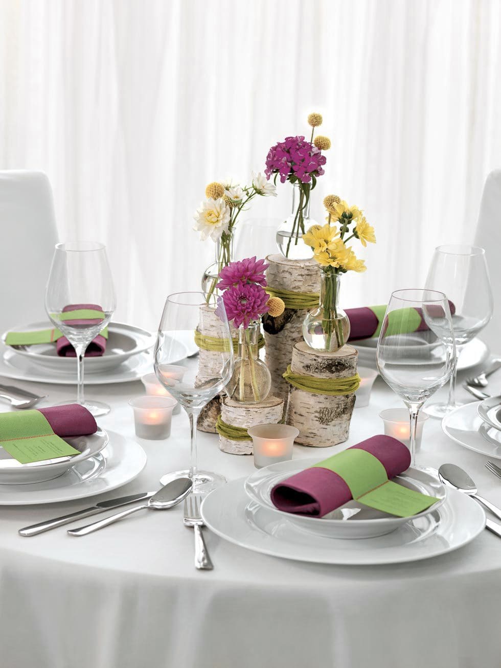 Supereinfache Tischdeko mit Birkenstämmen: 2 Ideen