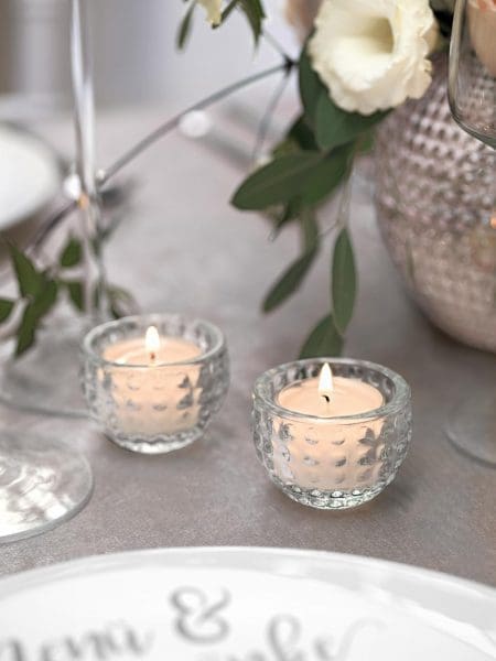 - Finaler Check mit Mustertisch: Testet eure Tischdeko mit einem Mustertisch und fotografiert sie. Damit wird der Aufbau kurz vor der Feier noch einfacher.