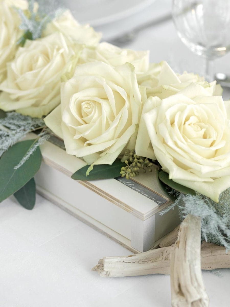 Je nach Jahreszeit könnt ihr die verschiedensten Blumen für eure Tischdeko in Weiß zusammenstellen.