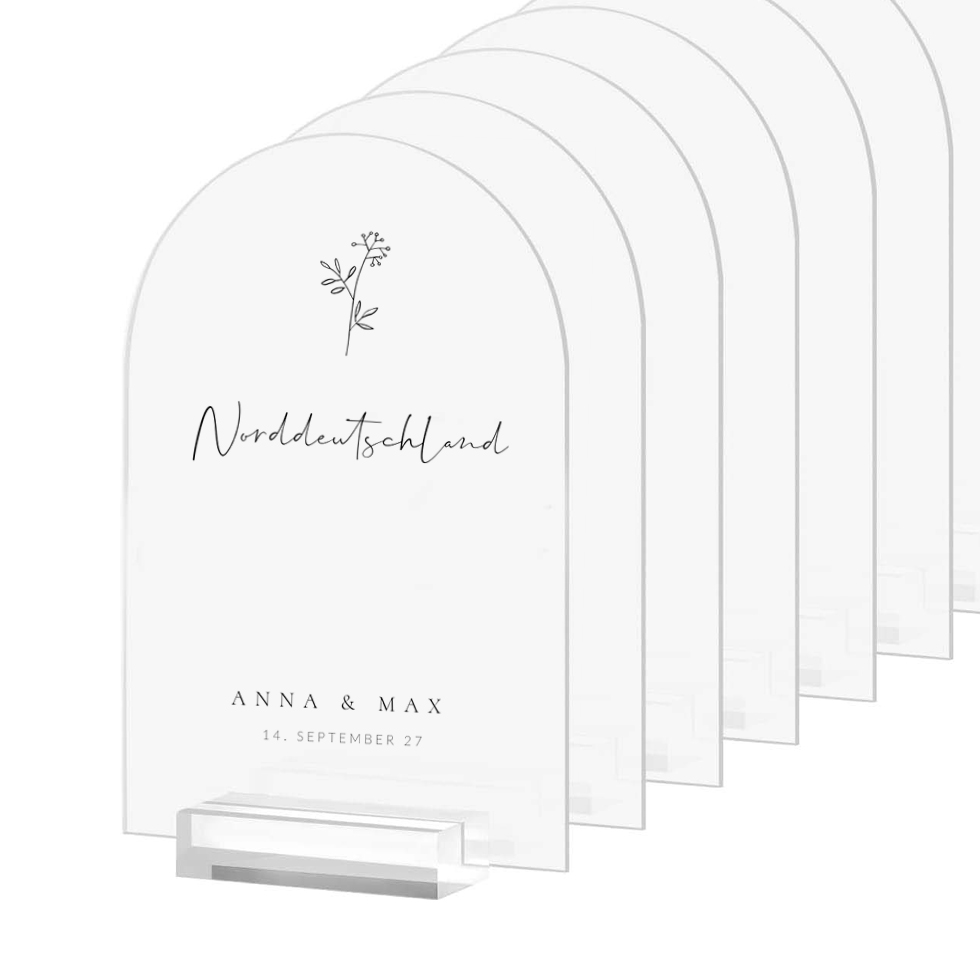 Diese Acrylplatten könnt ihr mit verschiedensten Kartenständern aufstellen und eure Tischnummern damit noch individueller gestalten: