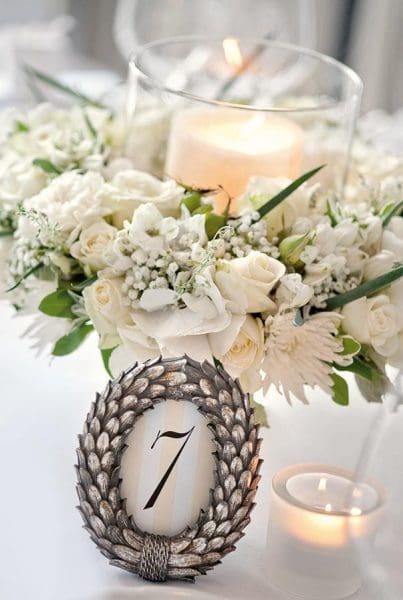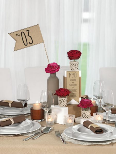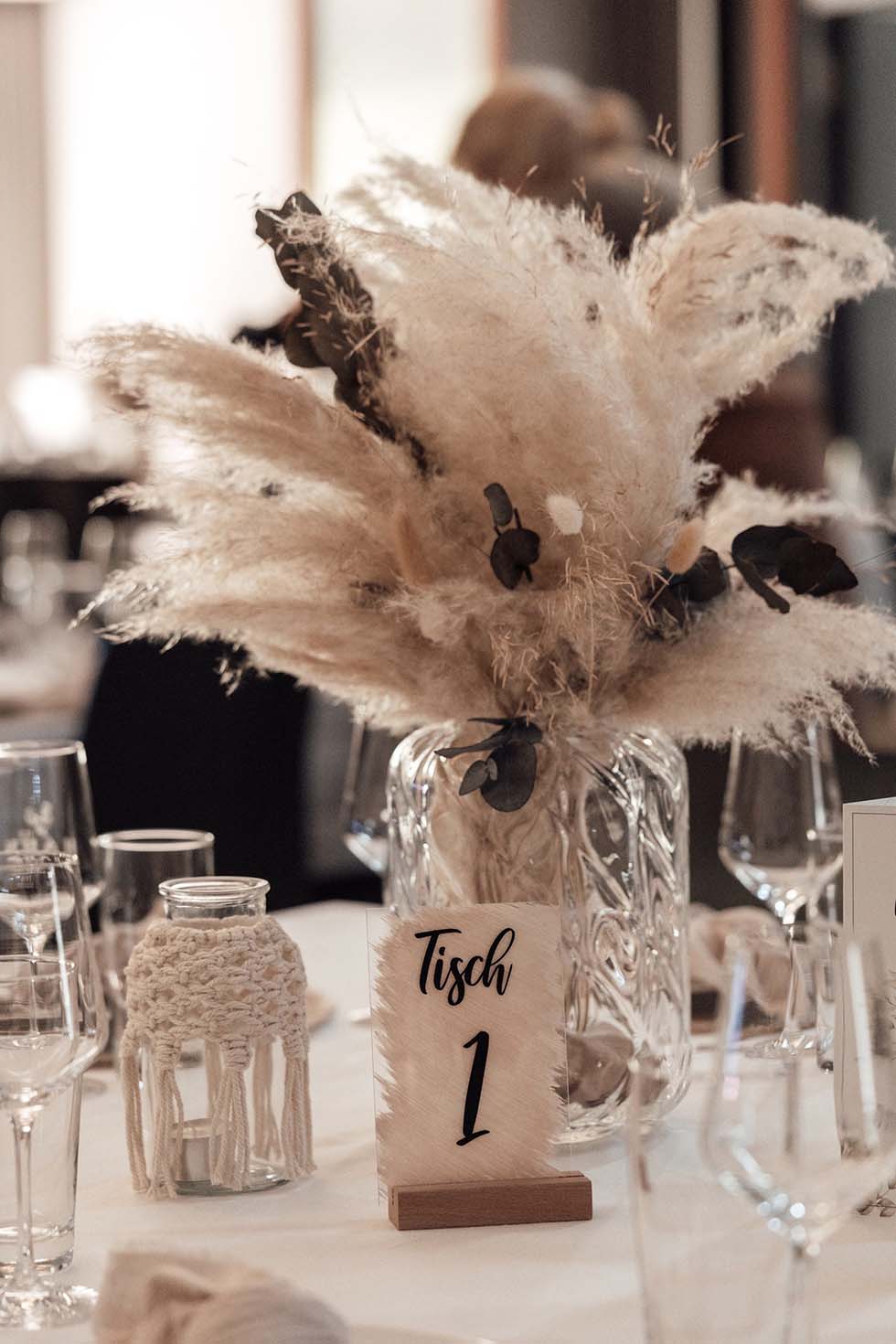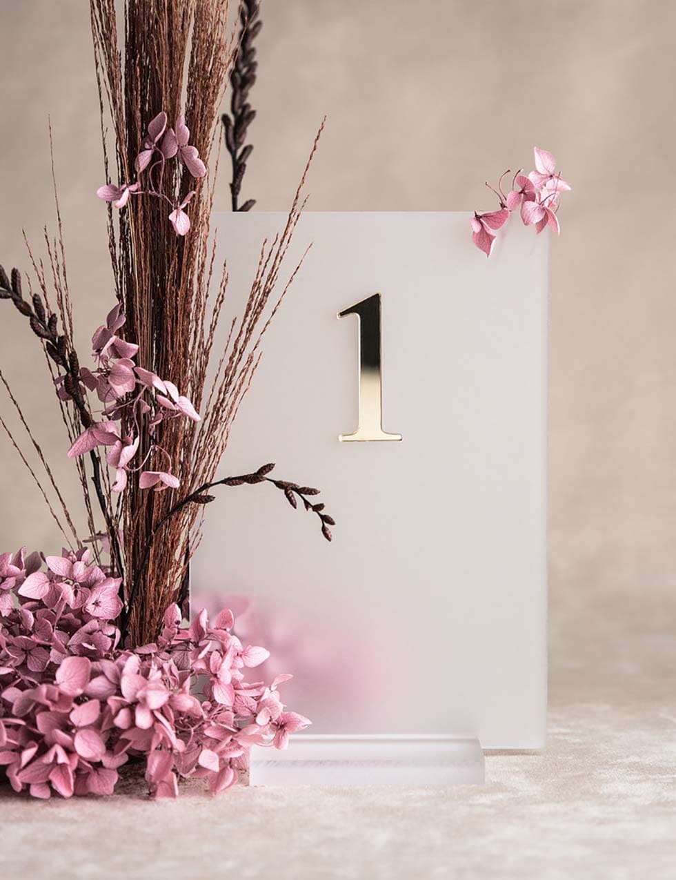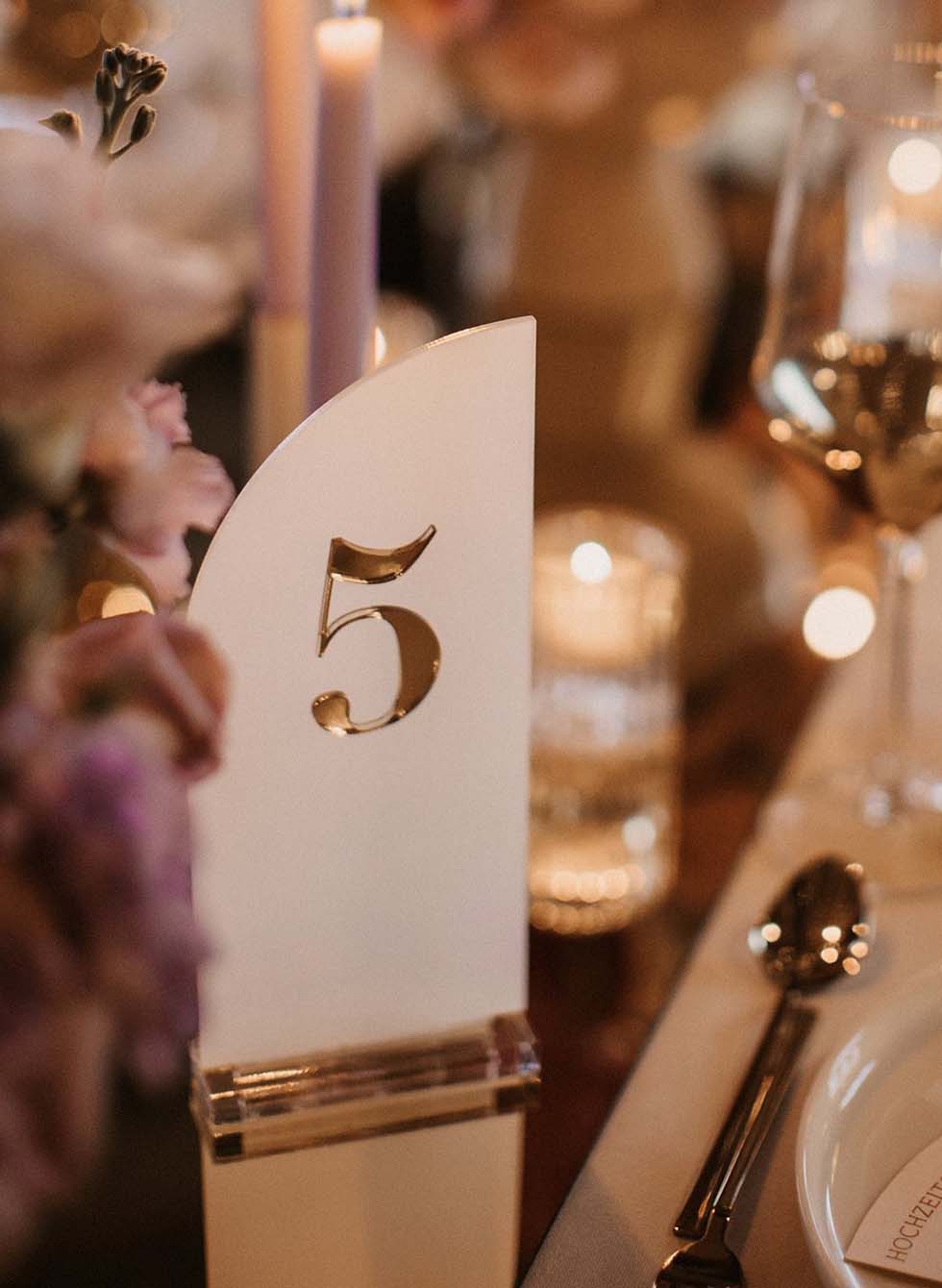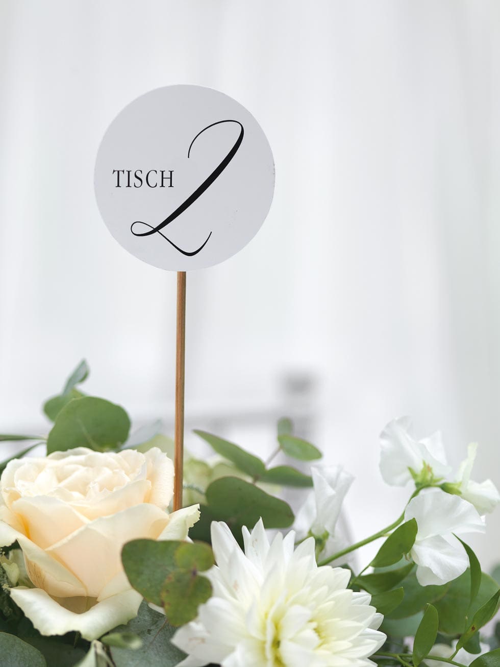 Mit Tischnummern markiert ihr die Tische, damit eure Gäste problemlos ihren Platz finden können.