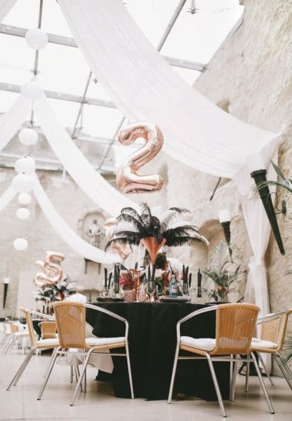 Gestaltet zum Beispiel Namen für jeden Tisch, die eure Vorlieben und Persönlichkeit darstellen oder gestaltet eure Tischnummern mit Kinderfotos, die in Alter der jeweiligen Nummer zeigen.