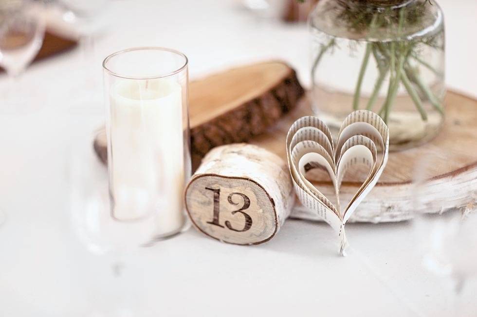 Diese Tischnummer ergänzt perfekt Tischdekos mit Baumscheiben oder Birkenstamm-Podesten (Beispiele für Tischdekos mit Holz entdecken).