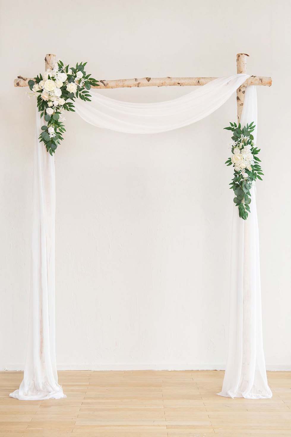 Wer es ein bisschen festlicher mag, kann sich aber auch für einen klassischen Traubogen mit Stoff und Blüten entscheiden. Das passt ebenso hervorragend.