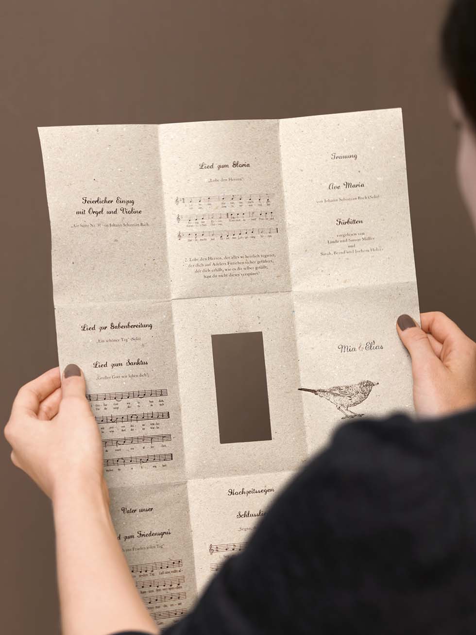 Süße kleine Ideen machen sowohl die Trauung als auch die anschließende Feier besonders. Neben einem Willkommensschild und Anhänger, die sowohl für Freudentränen-Taschentücher als auch für Gastgeschenke genutzt werden können, begeistert ihr eure Gäste beispielsweise mit einem völlig andersartigen Kirchenheft. Wie wäre es zum Beispiel mit unserer Zeitungsidee aus Kraftpapier oder einem Hochzeitsfächer, der euren Gästen den Ablauf der Trauung verrät?