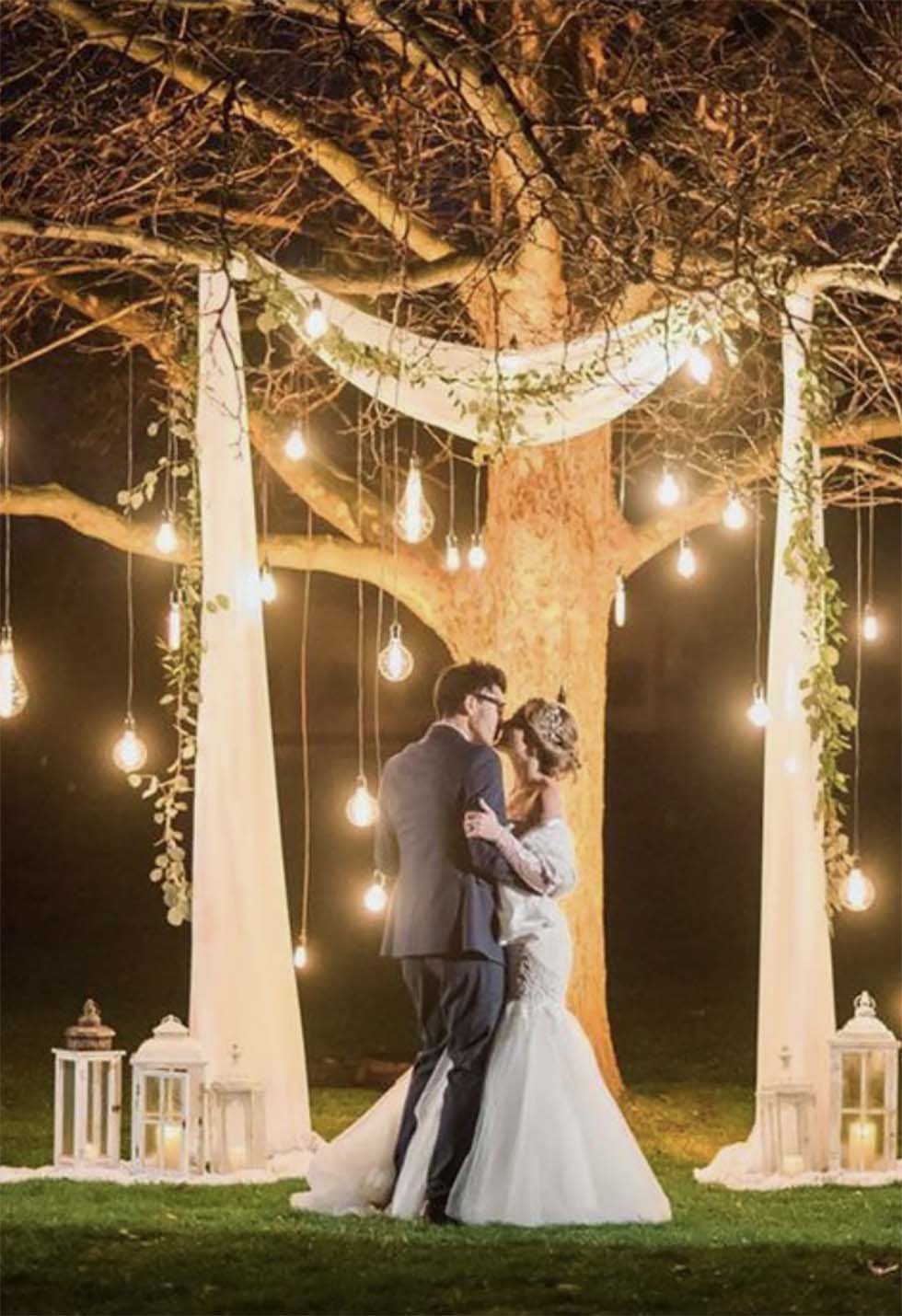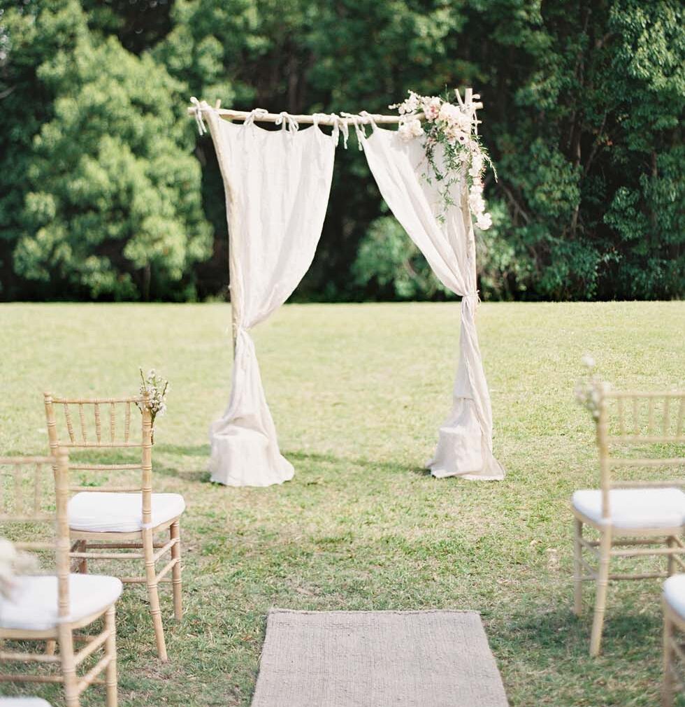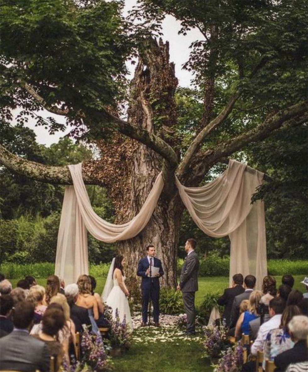 Heiratet ihr unter einem Baum, könnt ihr einen großen Ast nutzen, um daran Stoff weich fließend herunter hängen zu lassen.