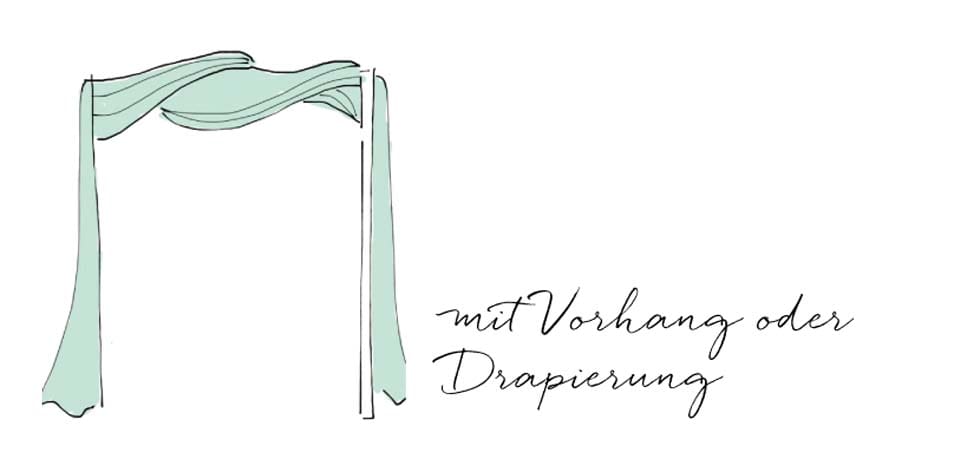 Daran können oben Stoffbahnen drappiert werden oder ihr nutzt ein paar Äste oder Zweige, um euren Traubogen zu dekorieren.