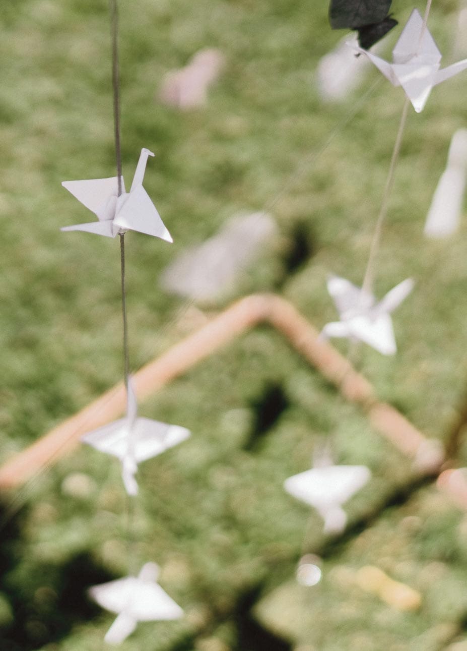 Alternativ könnt ihr aber auch Girlanden zum Beispiel mit Kranichen an den Traubogen hängen. Dies ergänzt sogar eine wunderschöne Symbolik, wenn ihr sie nach dieser Anleitung für Papierkraniche gemeinsam faltet.
