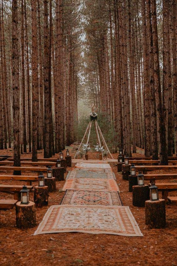 Mit ein paar weiteren Dekorationselementen oder – für eine Abendtrauung – noch ein paar Windlichter an einem besonders langen Ast herunterlaufen lassen und schon ist die Stimmung perfekt.