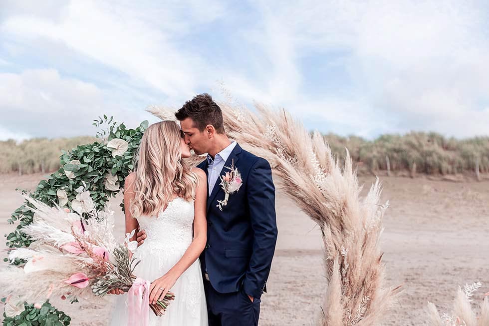 Und vor allem, wenn der Hintergrund sehr unruhig ist, schenkt ein Traubogen euren Gästen einen optimalen Blick auf die Trauung und sorgt auch dafür, dass ihr richtig großartige Fotos erhaltet.