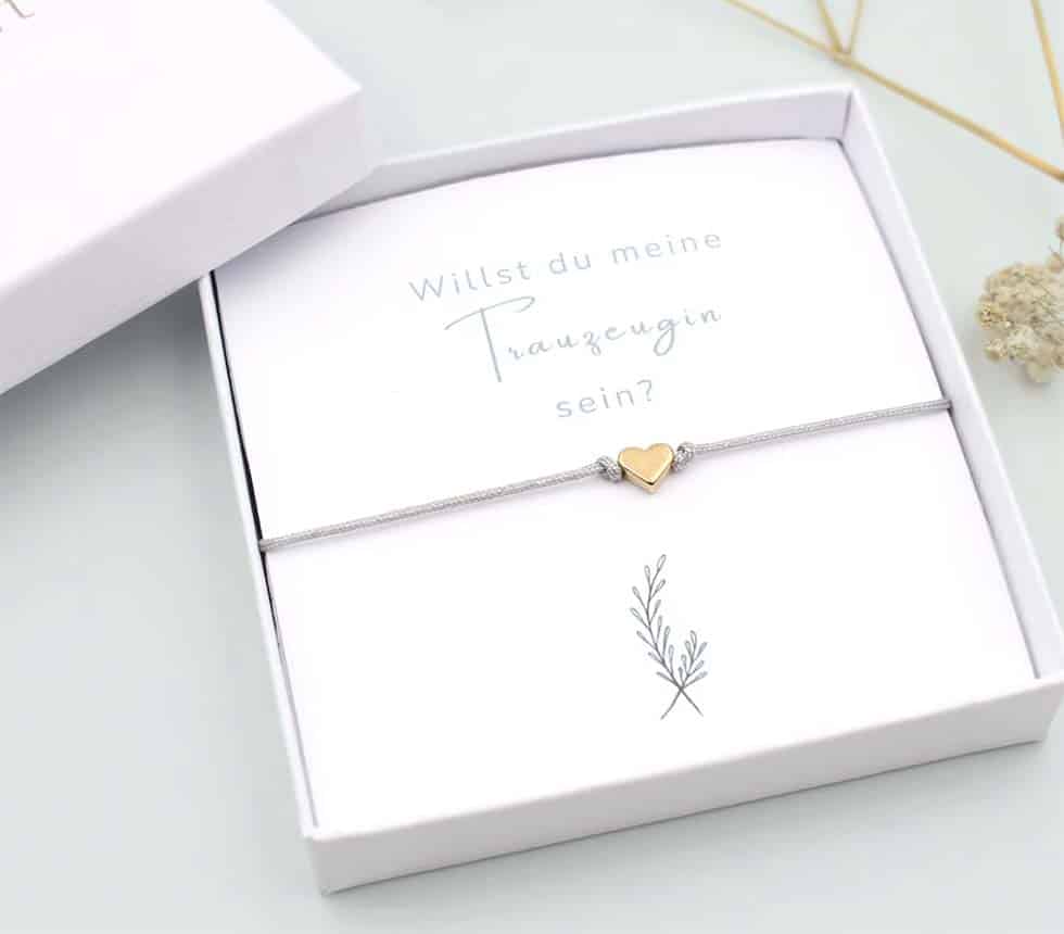 Extratipp: Verpackt damit ein schönes Armband für die Trauzeugin oder ergänzt ein Pandora-Sammelarmband mit "Willst Du meine Trauzeugin sein?"-Anhänger. Nach der Hochzeit könnt ihr einen weiteren Anhänger für das Armband ergänzen.