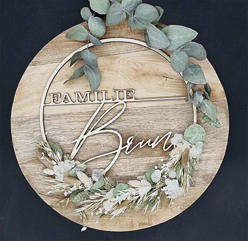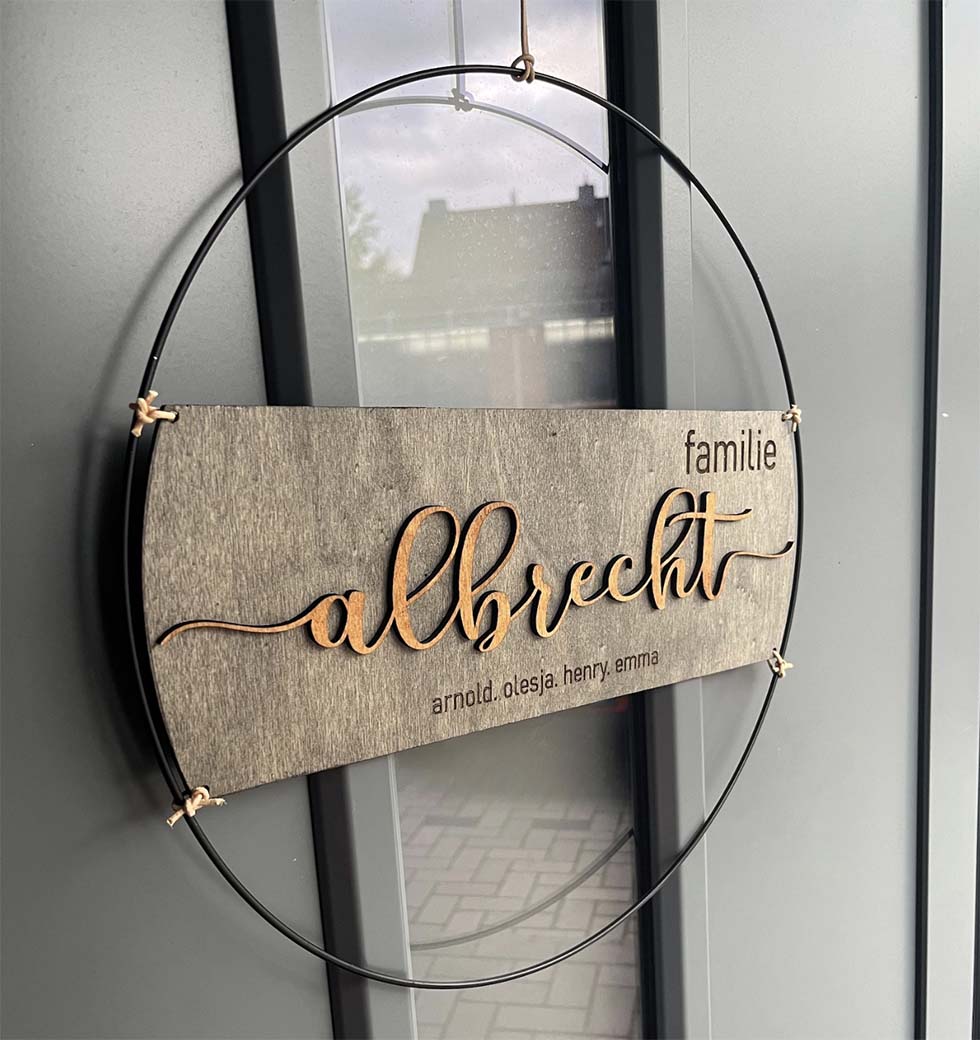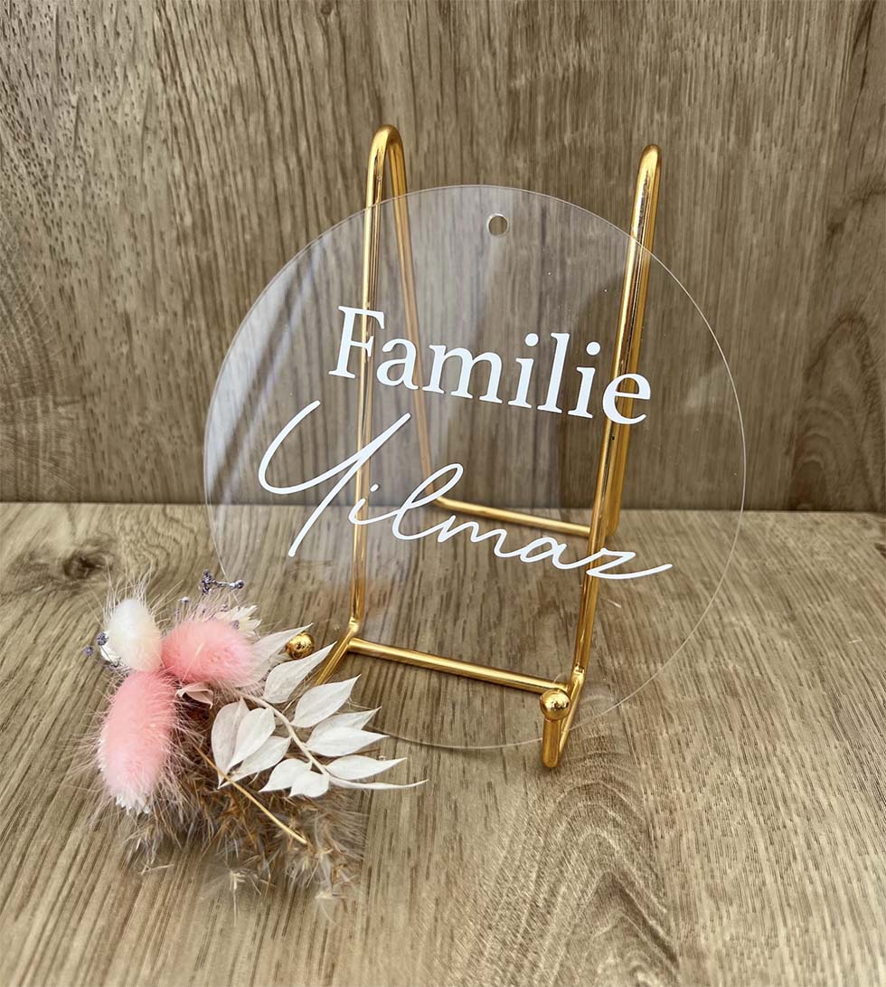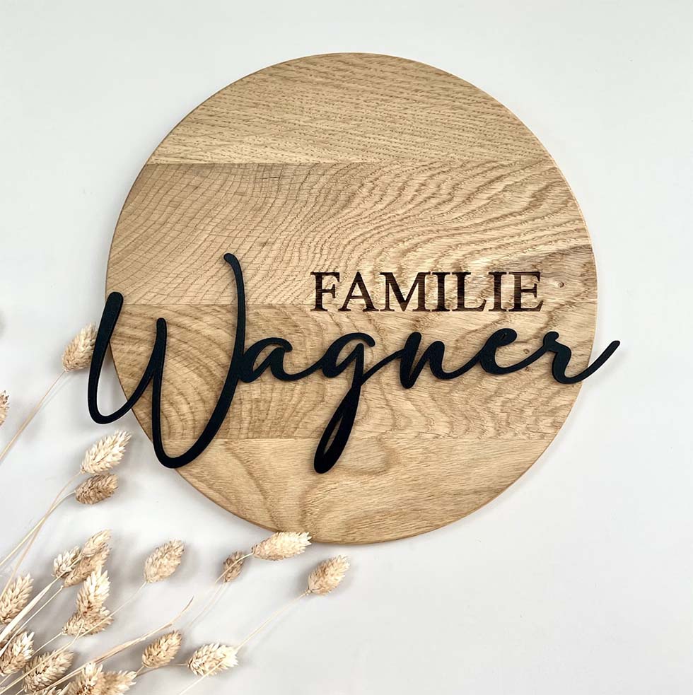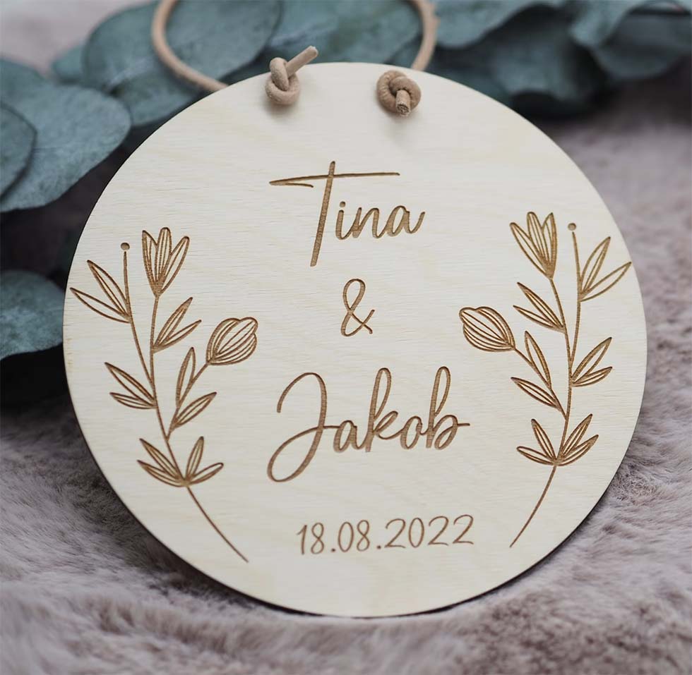 Gibt es etwas Bleibenderes, als zur Hochzeit ein Türschild mit dem gemeinsamen (neuen) Familiennamen zu verschenken? Vor allem, wenn das Brautpaar gerade ein Haus baut oder in eine neue Wohnung einzieht.
