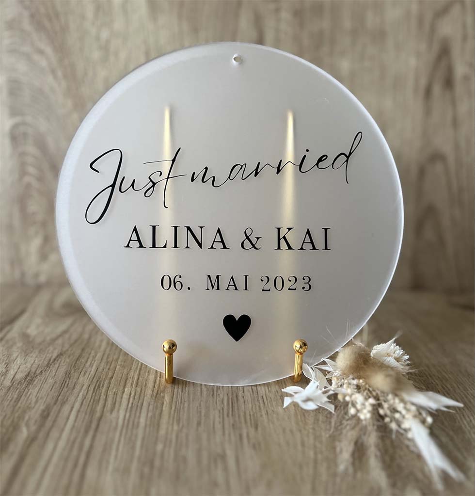 Personalisiertes Schild zur Hochzeit "Just Married"