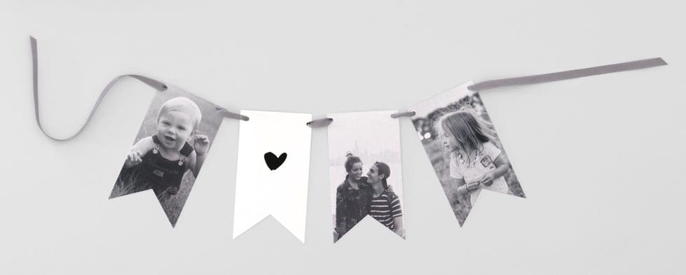 Richtig genial wird eure Girlande, wenn ihr noch ein paar Kinderfotos oder gemeinsame Fotos der letzten Jahre von den beiden ergänzt: