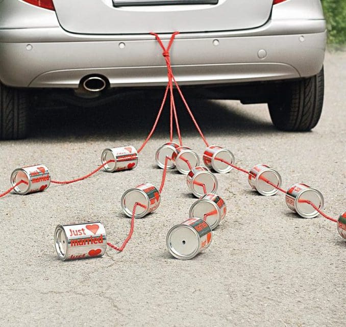 Es ist einfach eine zauberhafte Überraschung für das Brautpaar, wenn es beim Losfahren plötzlich hinter dem Auto scheppert, denn das verjagt alle bösen Geister und bringt Glück.
