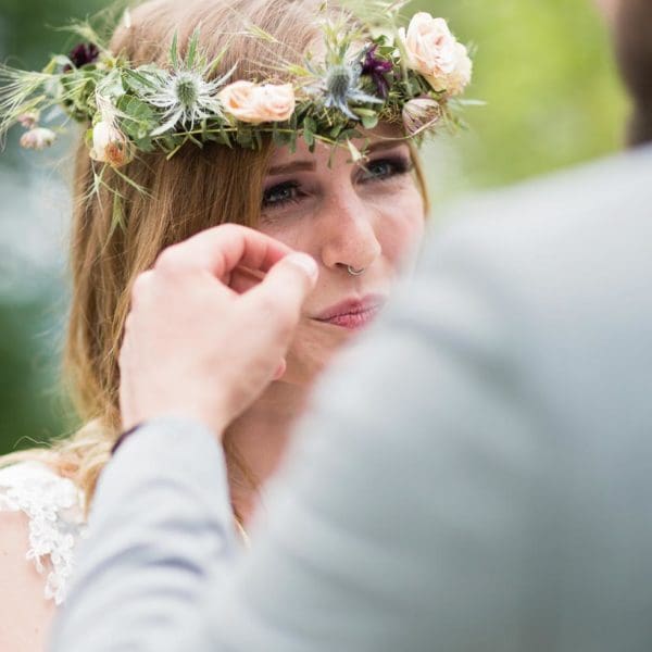 Handys würden nicht nur anderen Gästen, sondern auch eurem Hochzeitsfotografen die Sicht auf euch als Brautpaar versperren – beim Einzug, beim Eheversprechen, beim Hochzeitskuss und all den anderen besonders stimmungsvollen Momenten bei der Trauung.