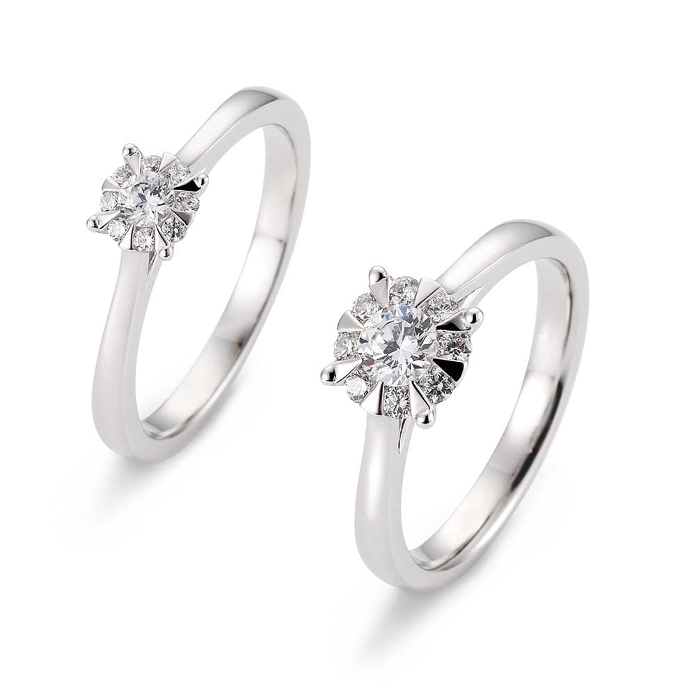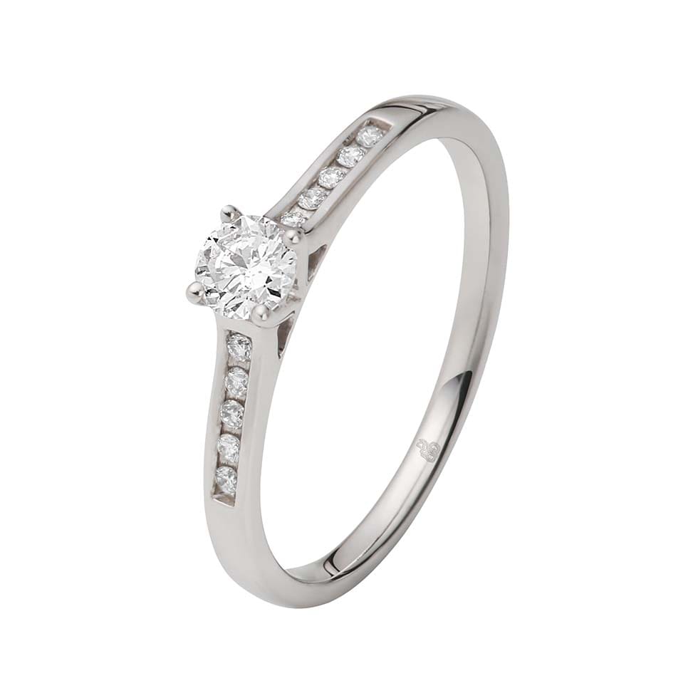 Noch großartiger funkelt der Verlobungsring, wenn der Solitär durch weitere kleine Brillanten ergänzt wird. Absoluten Wow-Effekt bietet hier ein Pave (abgeleitet vom französischen Wort „pavé“ für „gepflastert“ oder „Pflasterstein“). Hierbei wird die Ringschiene ein- oder mehrreihig mit kleinen Brillanten besetzt.