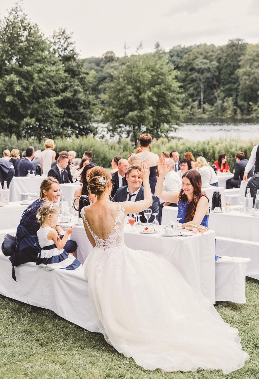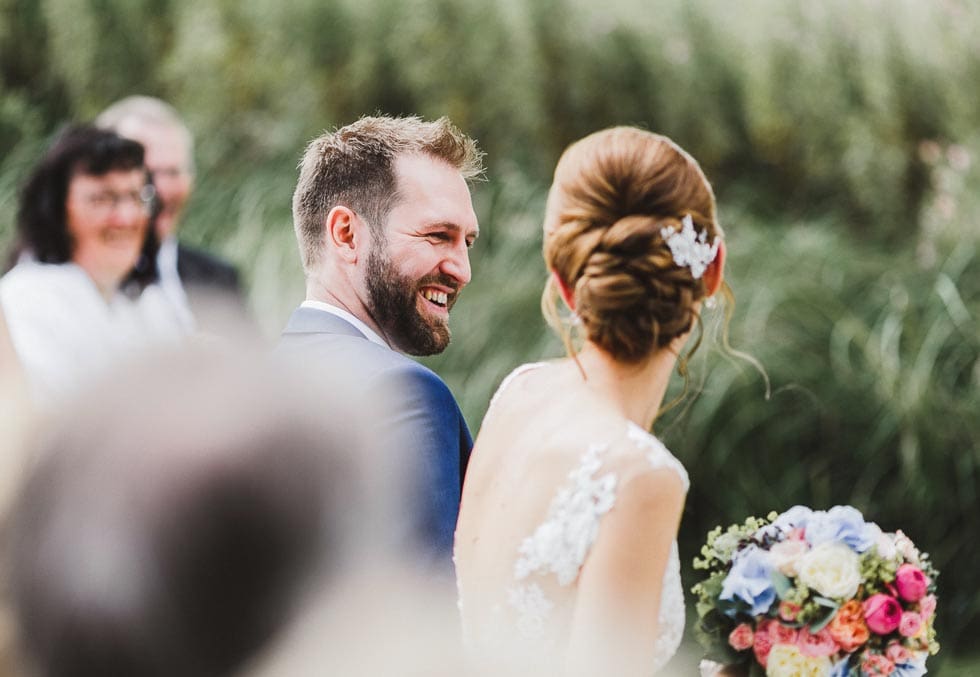„Wir wollten auf jeden Fall eine Sommerhochzeit feiern – am besten an einem See und draußen in der Natur“, erklären Antje und Sven die Konzeptidee zu ihrer Hochzeit. Unser Leitgedanke war, ein großes Familienfest – ungezwungen, aber trotzdem chic.“