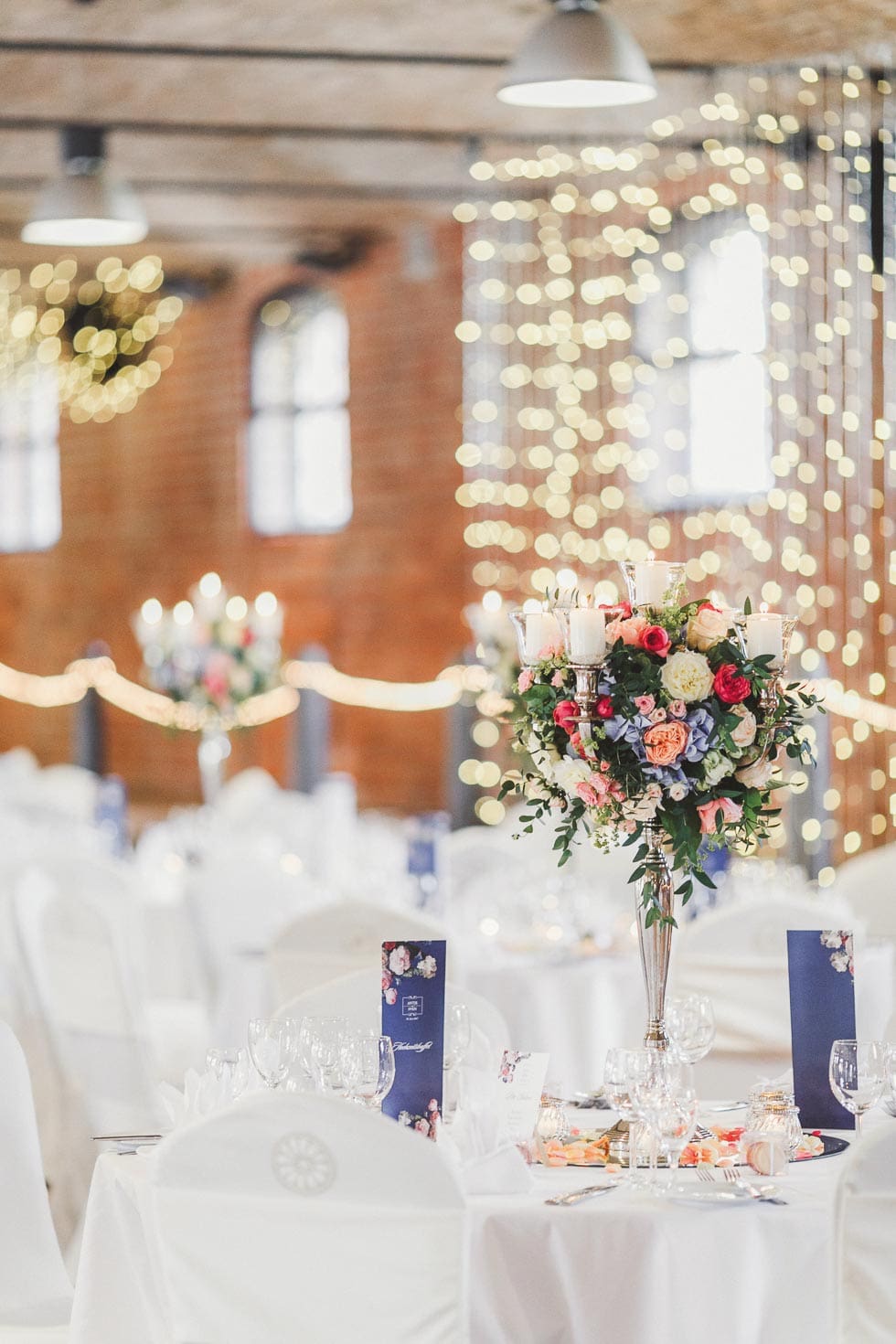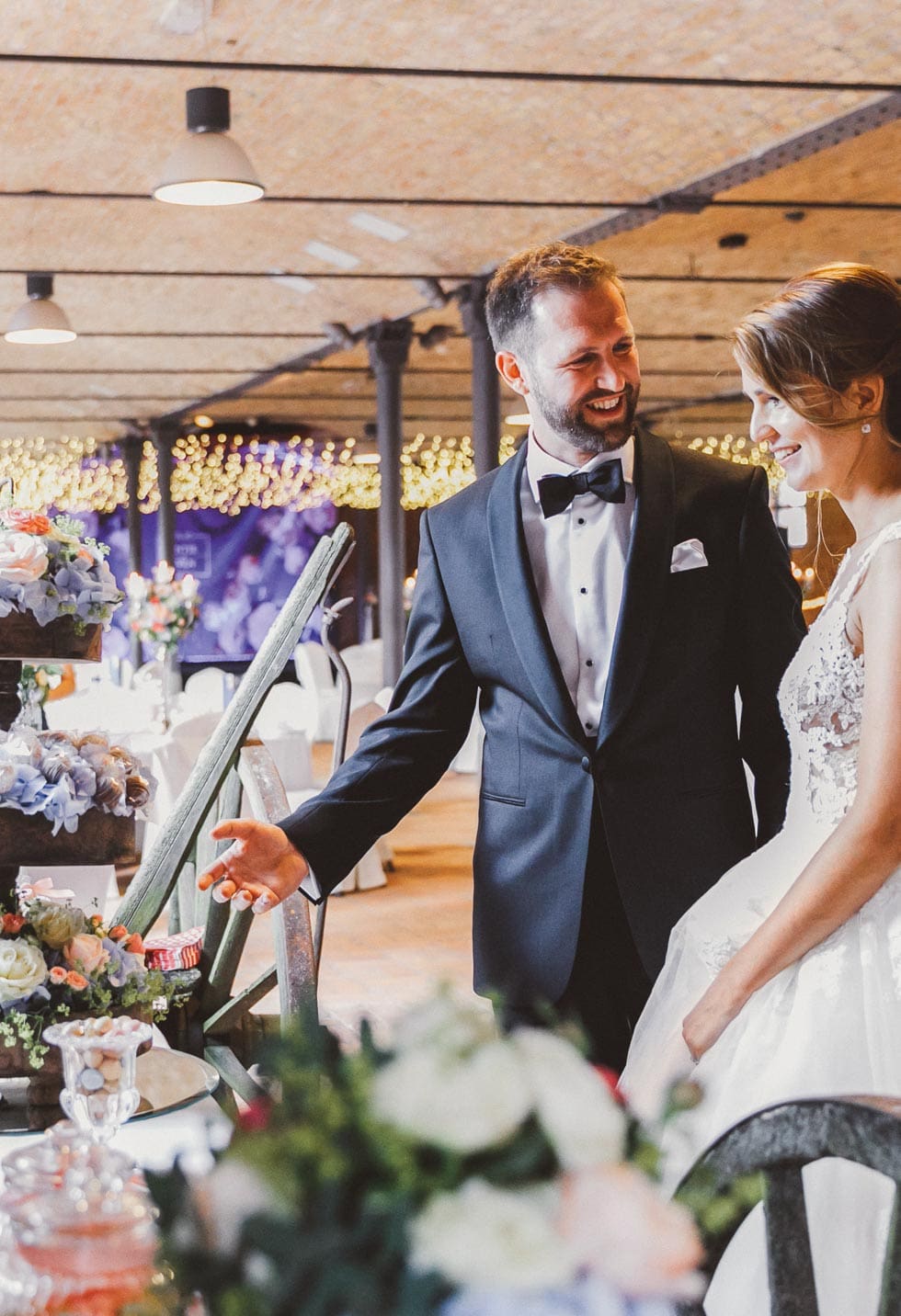 Schließlich verliebten sie sich kurz vor der Hochzeit in die Idee eines Lichtervorhangs. Zunächst fanden sie keinen Anbieter, der ein annehmbares Angebot machte, doch durch Zufall stießen sie auf Kingsize Events, die den beiden ein fantastisches Beleuchtungskonzept vorschlugen. Ein absolutes Highlight!