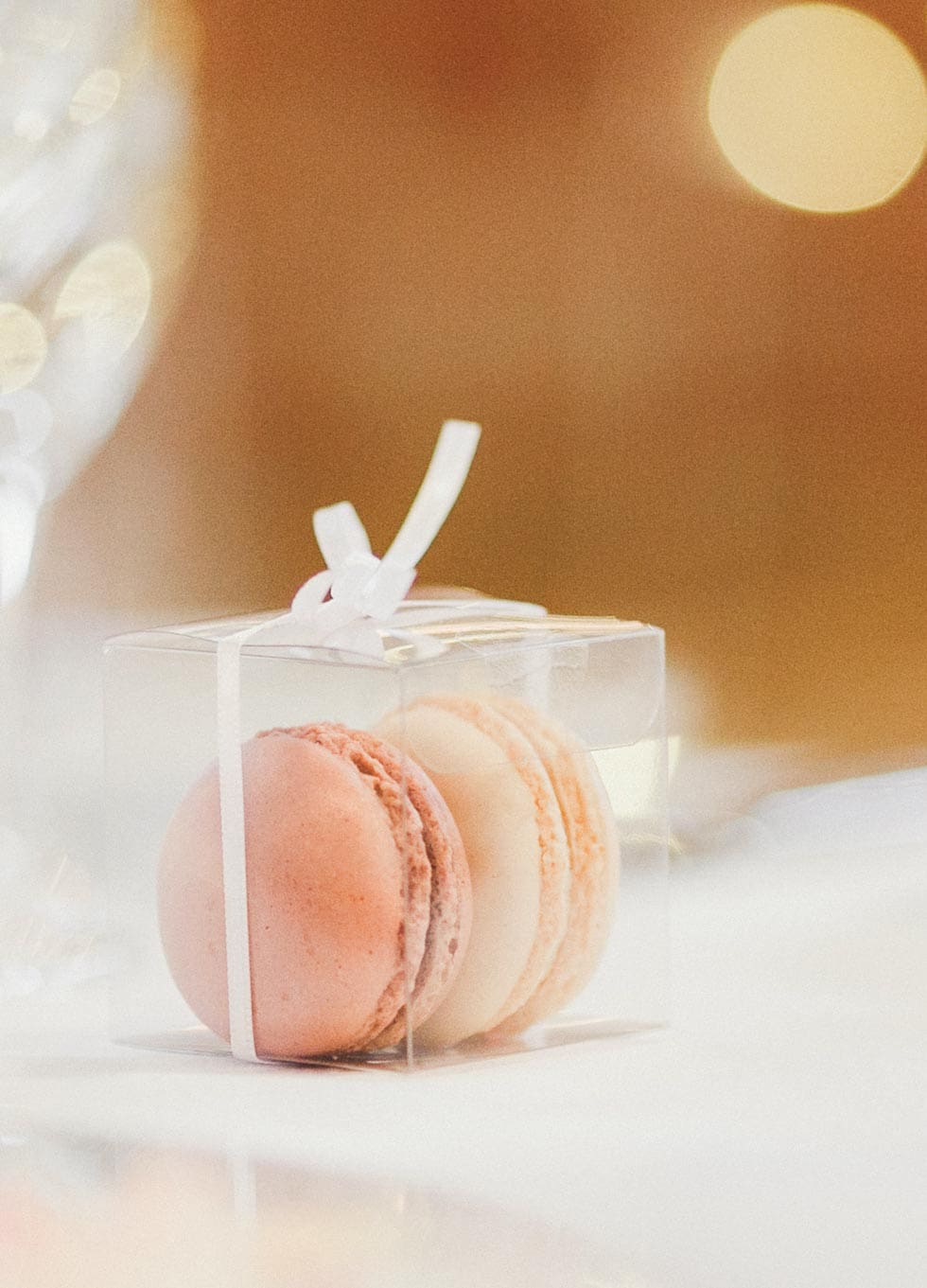 Auch ihre Gastgeschenke waren ein ganz persönlicher Wunsch: Je ein Himbeer- und Vanille-Macaron in einer kleinen transparenten Schachtel verpackt. „Die essen wir beide gerne und verbinden sie außerdem mit unseren Aufenthalten in Frankreich während des Studiums.“
