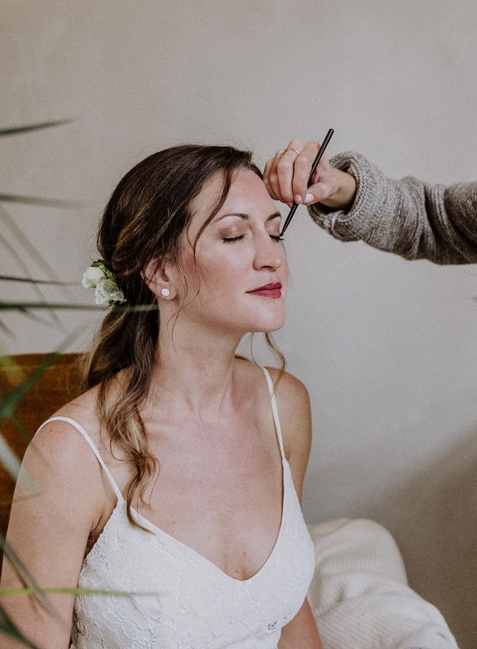 Ein natürliche Brautstyling hebt eure Vorzüge hervor, ist aber vorrangig mit dezenten Farben für Lippen und Augen-Make-up gestaltet.