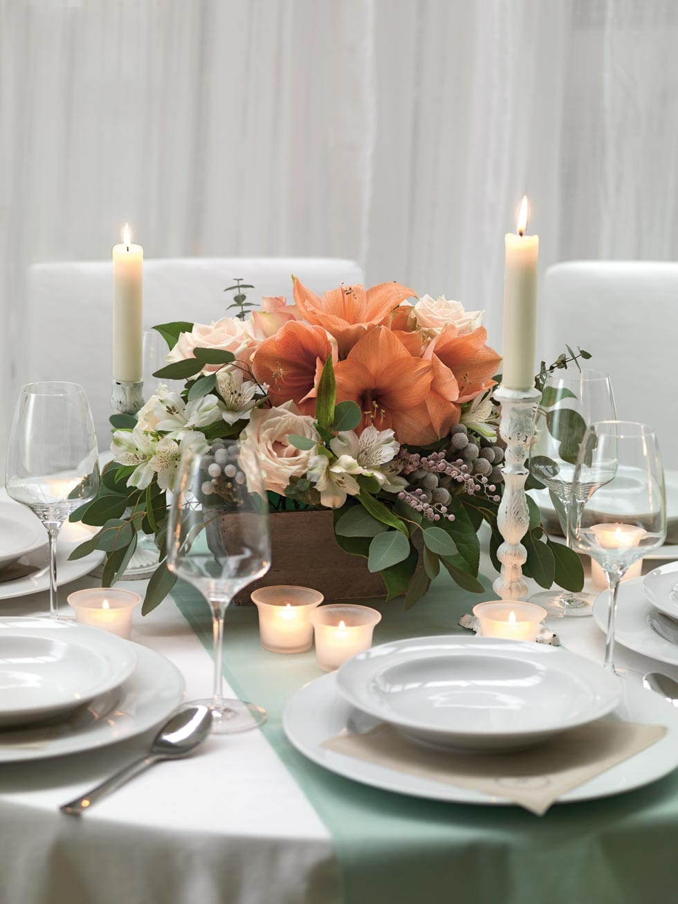 Der DIY- und Homemade-Look der vergangen Jahre mit Jute, Spitze und Kraftpapier wird allerdings zunehmend durch elegantere Deko, üppige Blumenarrangements oder auch wenigen Boho-Elementen gespickt.