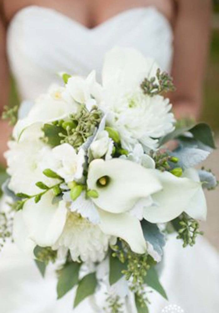 Neben traumhaften Blüten könnt ihr euren Brautstrauß mit ein paar winterlichen Elementen gestalten, wie zum Beispiel Tannenzapfen, Eiskristallen oder Tannengrün. Hier ein paar klassische Winter-Brautsträuße als Beispiel: